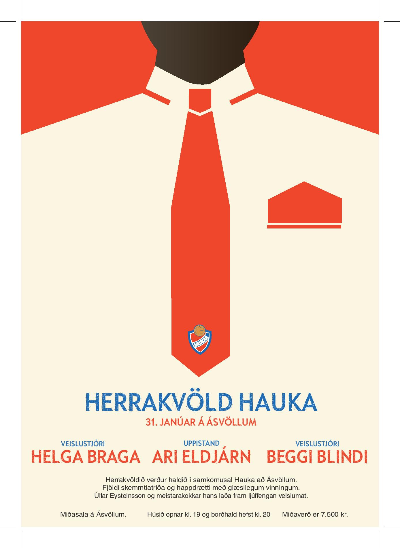 Herrakvöld Hauka verður haldið laugardaginn 31. janúar í veislusalnum á Ásvöllum, þar munu Úlfar Eysteinsson og hans meistarakokkar galdra fram dýrindis veislumat.