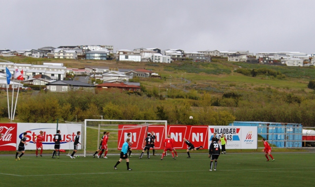 Ágætis veður var á Ásvöllum í kvöld þó svo að það hafi ringt smá undir lok fyrri hálfleiks.