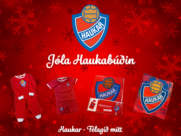 Sængurver – stærð 140x200cm og 50x70cm – kr .2.500.- . Handklæði –  kr. 4.000.- Hægt er að nálgast Haukavörunar í afgreiðslunni á Ásvöllum alla daga fram að jólum (lokað á Þorláksmessu).